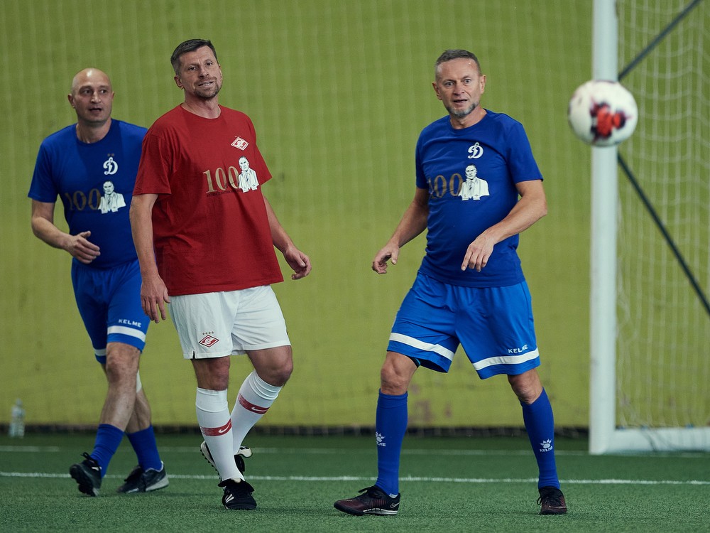 Первыми в борьбу вступили принципиальные соперники – динамовцы и спартаковцы. В составе «Динамо» можно было обнаружить недавних звёзд сборной России – Дениса Колодина и Александра Самедова. Под руководством Владимира Эштрекова бело-голубые сходу завладели инициативой, и Дмитрий Булыкин в результате красивой многоходовой комбинации открыл счёт. Собравшиеся зрители, большая часть из которых поддерживала «Спартак», рассчитывала, что сейчас начнётся игра в догонялки. Однако ветераны «Динамо» продолжили гнуть свою линию. Эдуард Корчагин воспользовался изумительной диагональю Максима Ромащенко и распечатал ворота Алексея Прудникова, который в своей карьере четыре сезона защищал ворота бело-голубых. Подытожил динамовское превосходство всё тот же Корчагин, оформивший результативный дубль и разгромный счёт на табло – 3:0.
